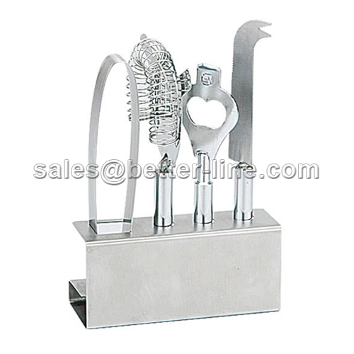 Including: knife+bottle opener+ice tongs+jigger+S/S stand