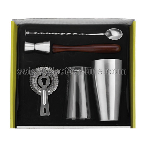 Including: 800ml boston shaker+450ml pint glass+jigger+strainer+ bar spoon+ muddler