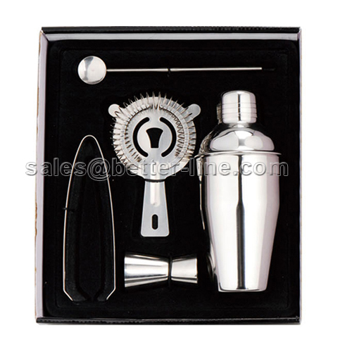 Including: 550ml shaker + ice tongs + stirrer + strainer + jigger